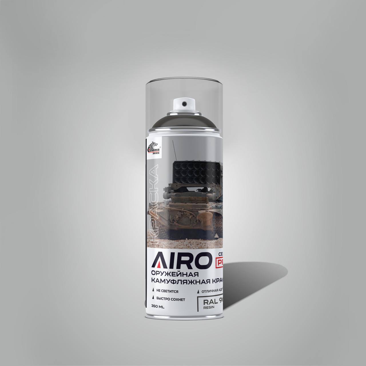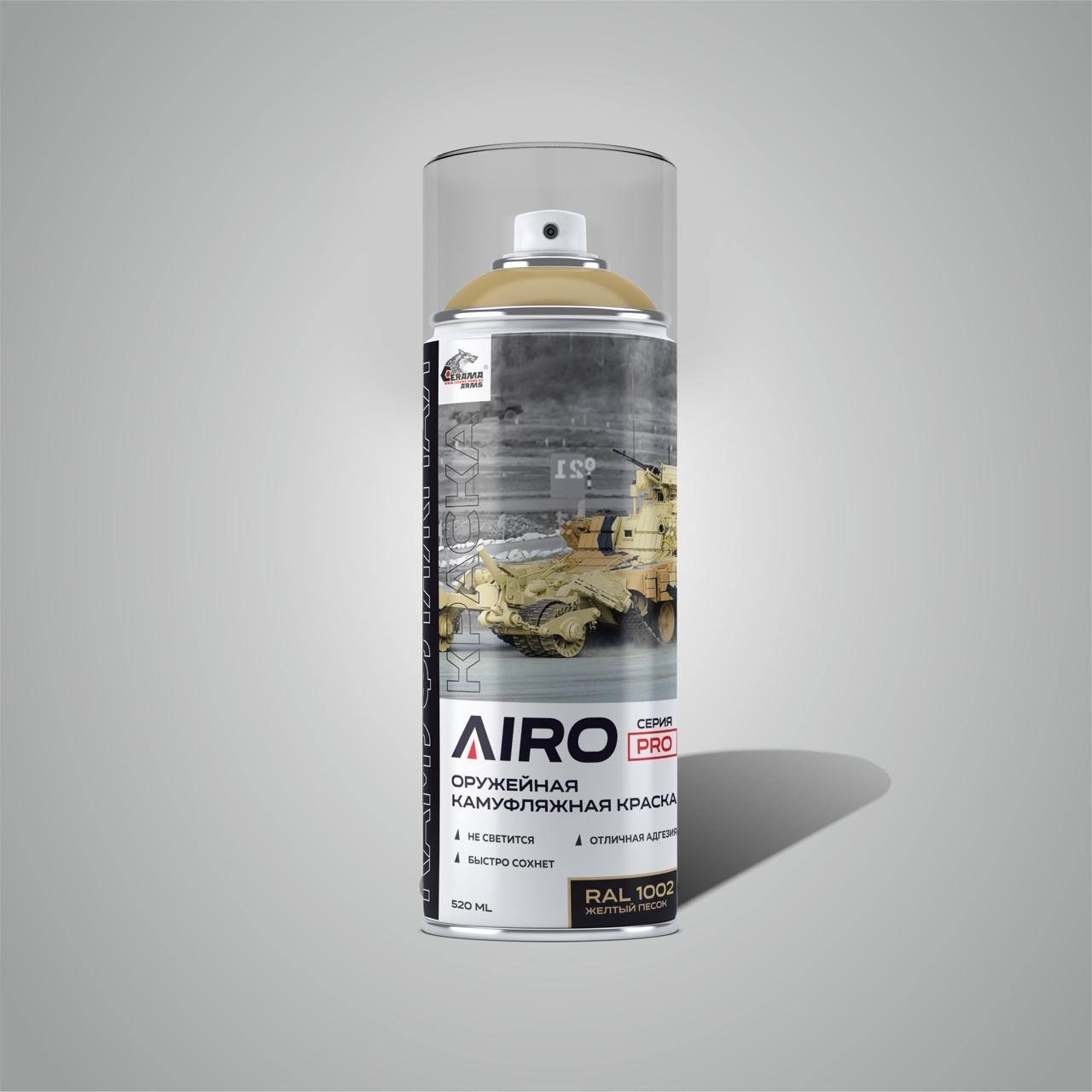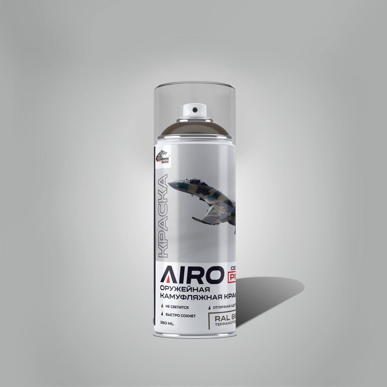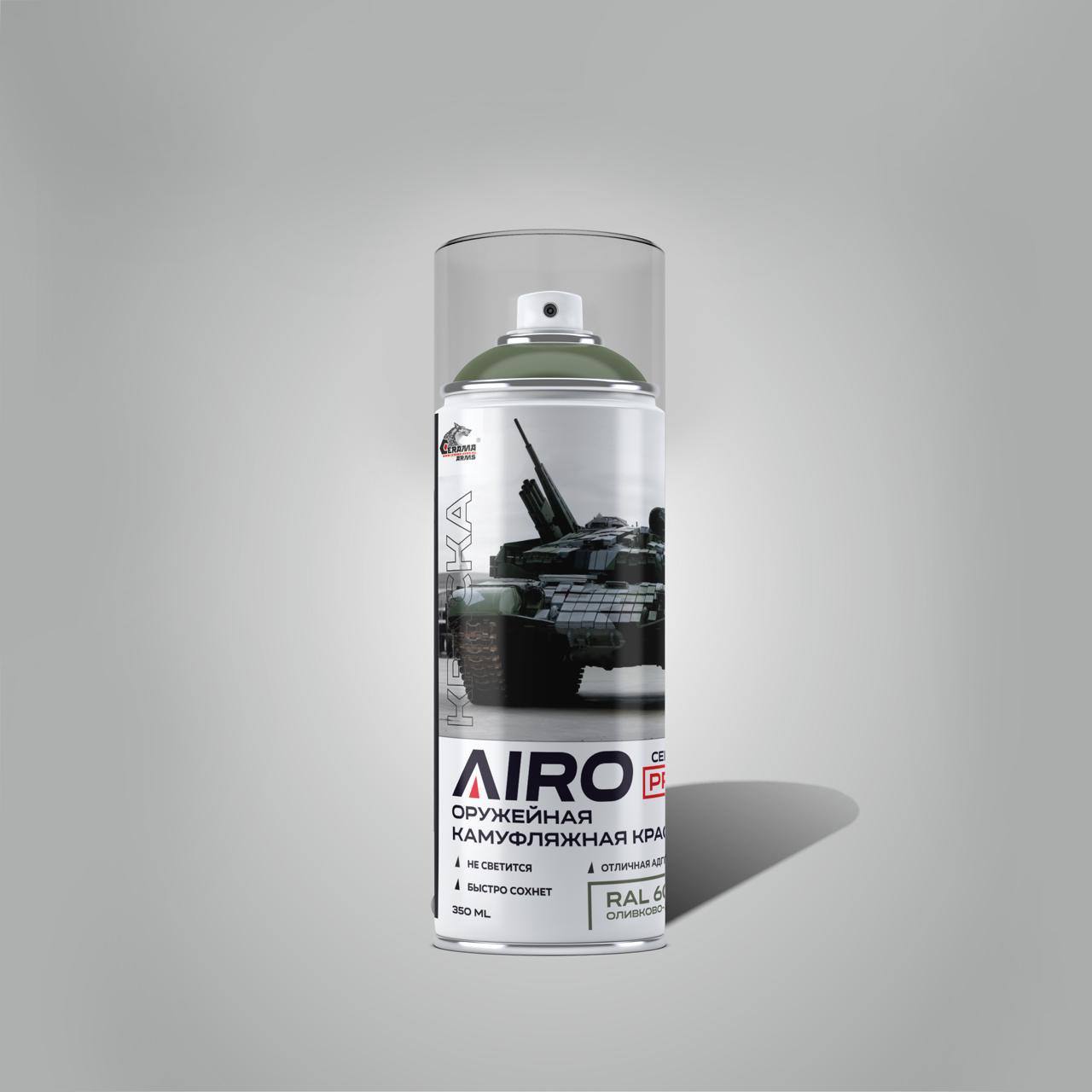 Камуфляжная краска «AIRO» СЕРИЯ PRO это однокомпонентная краска на основе комбинации высококачественных модифицированных акриловых и полиэфирных смол. Создана для нанесения в полевых условиях. Имеет отличную адгезию к стали, алюминию и пластикам. Может перекрашиваться 1К и 2К покрытиями как после высыхания, так и мокрым- по мокрому. При производстве аэрозольных баллонов используется фурнитура фирмы KOH-I-NOOR.